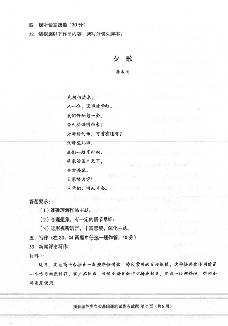 今天,东南教育网小编为大家带来了2018年陕西省普通高校艺术类招生播音编导类专业基础课笔试统考试题,希望能帮助到大家,一起来看看吧!